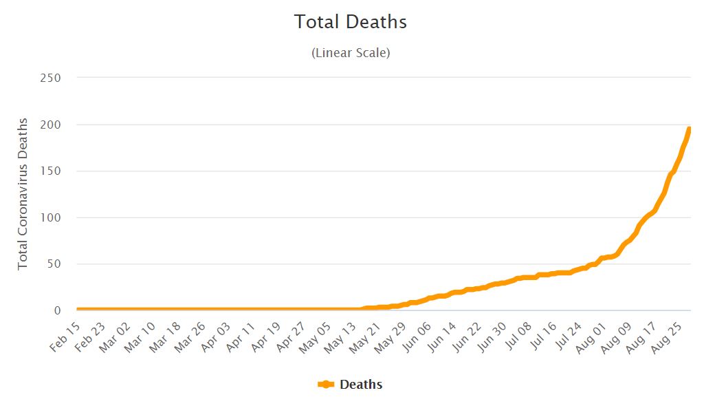 Let’s look at the data of COVID-19 in Nepal, as of 28 August 2020. (Source: Worldometer)